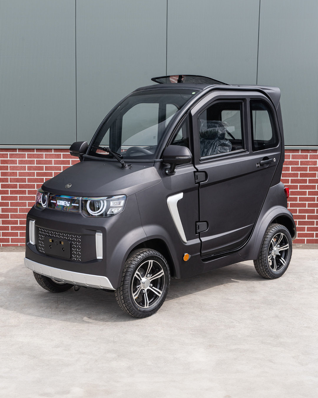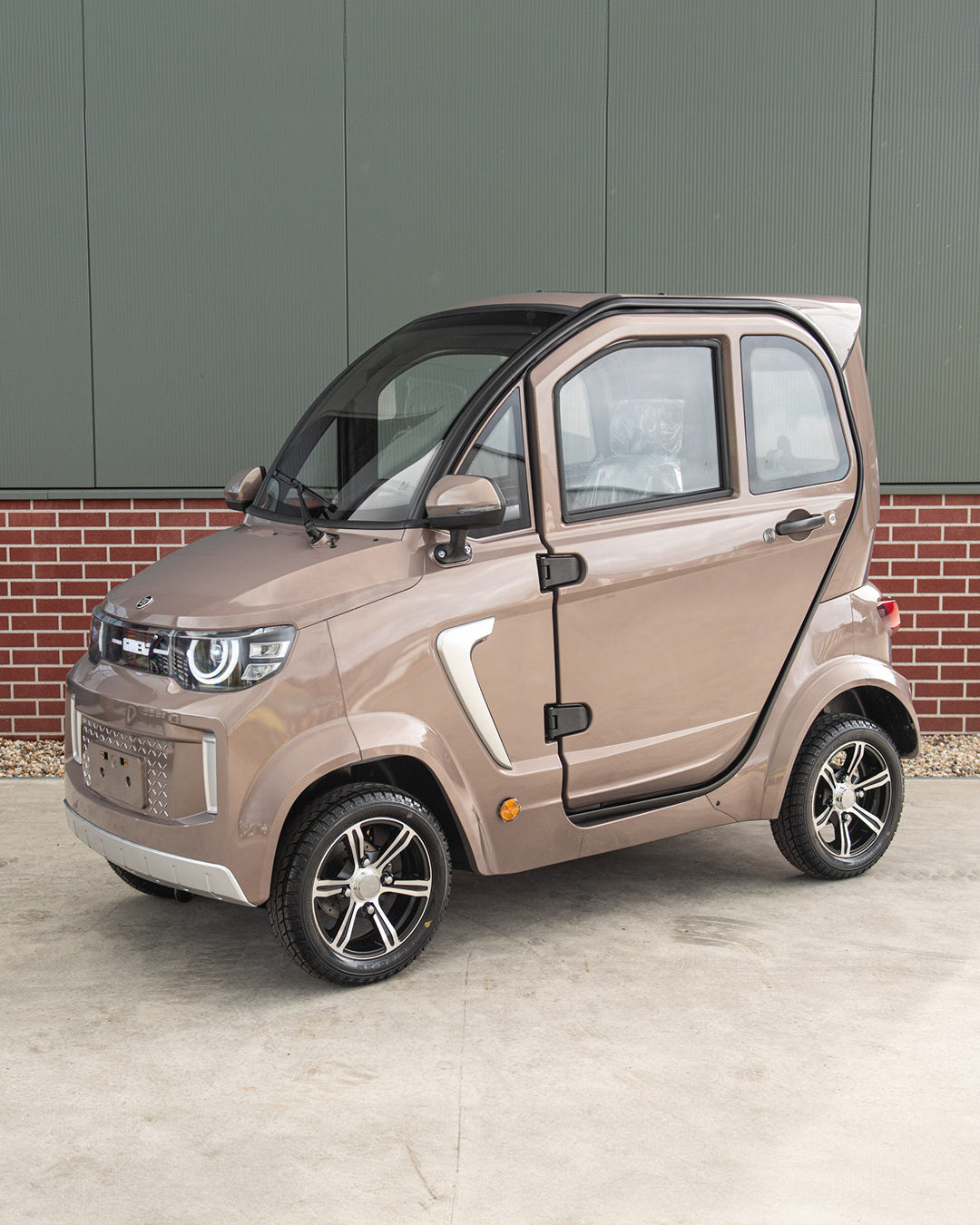 • Voordeel: 100% elektrisch, geen wegenbelasting, neutrale kleur en rijbewijsvrij.
