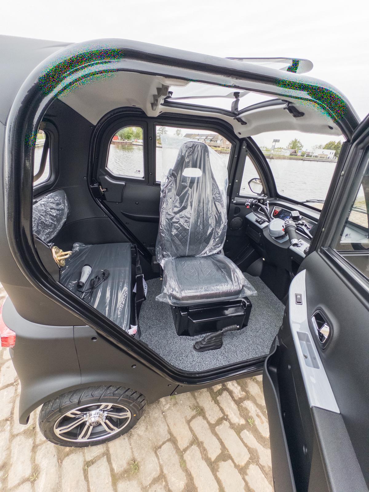 - Zitplaatsen: 1 draaibare bestuurdersstoel en een achterbank voor 1 extra persoon of bagage.