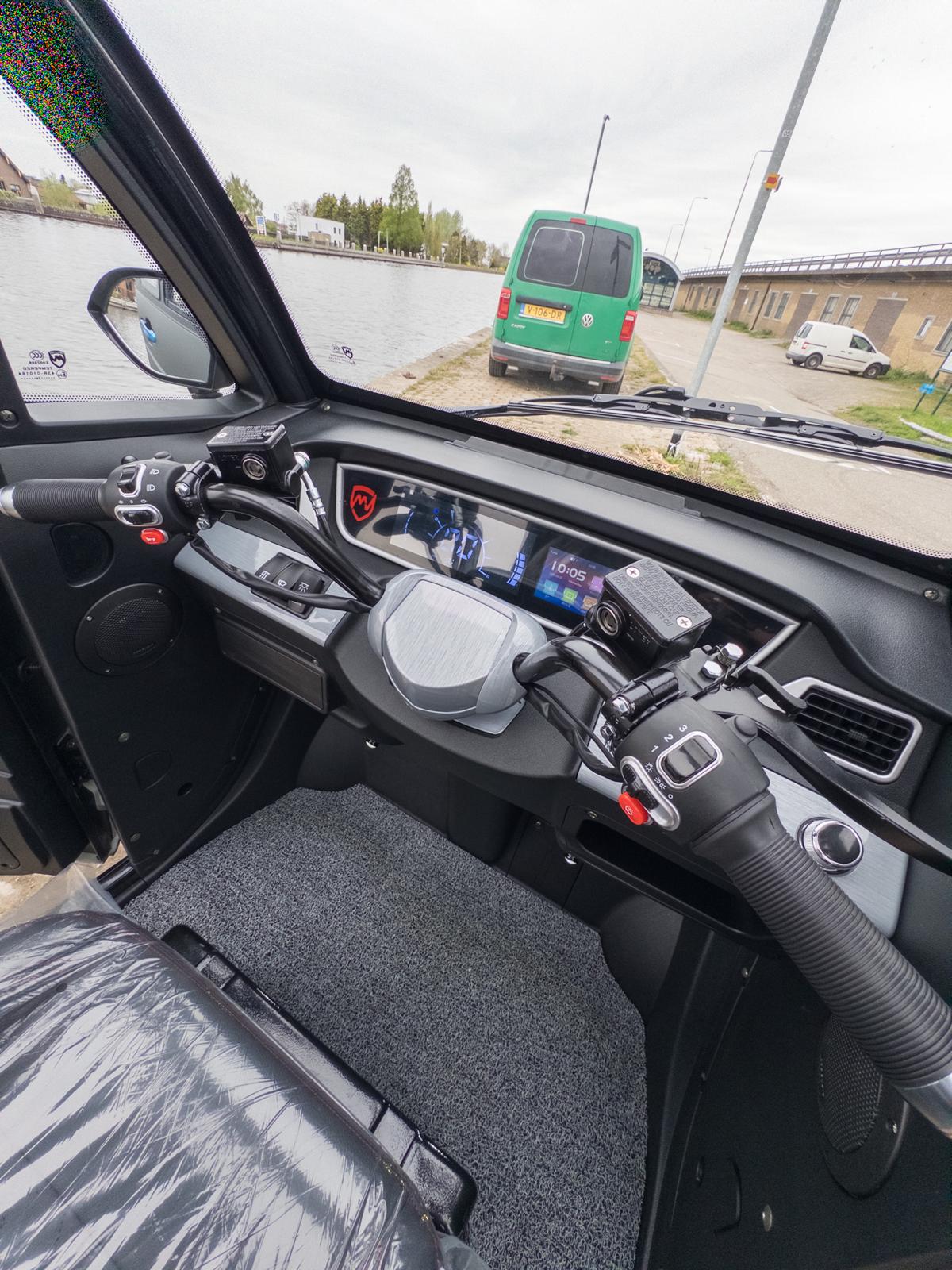 - Draaibare stoel: De comfortabele, draaibare bestuurdersstoel maakt instappen eenvoudig, zelfs voor mensen die slecht ter been zijn.